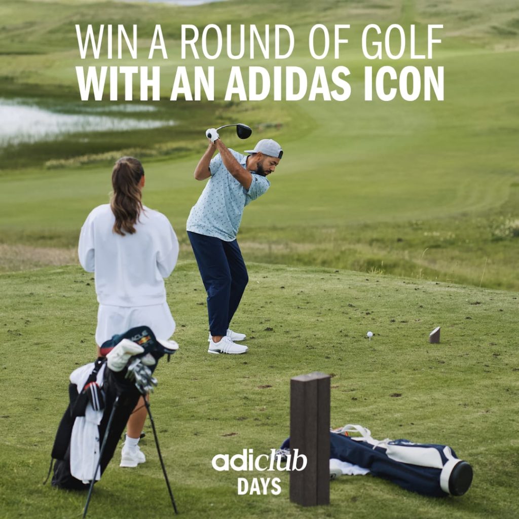 The grand prize offers an unforgettable day on the golf course. An adiclub member and a friend could win a round of golf with an adidas athlete, including a course booking, head-to-toe kit, lunch and more. Stand a chance to play, connect, and experience something special with one of your heroes.
