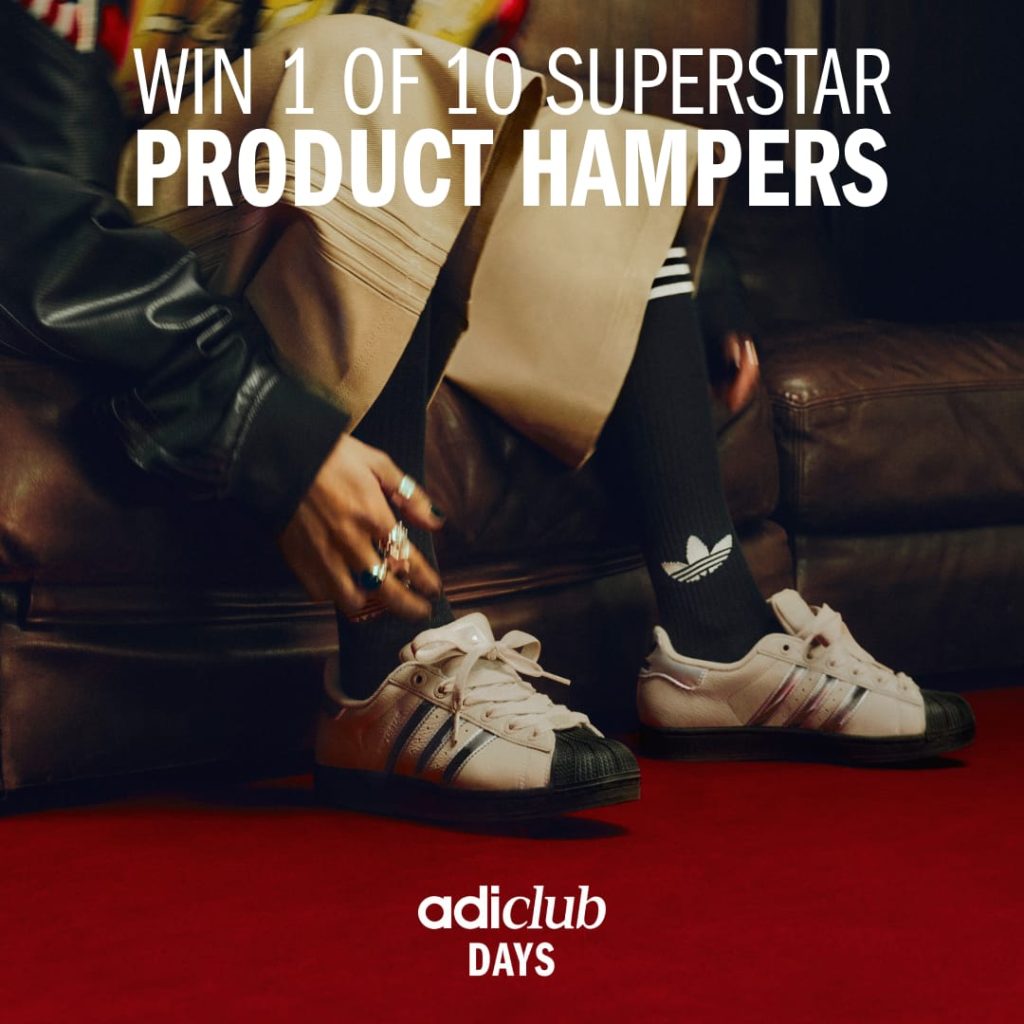 Ten lucky Adiclub members over the age of 18 stand a chance to win an exclusive hamper packed with heat, including a pair of iconic Superstar sneakers, a bold Firebird tracksuit, and customization charms to make it your own.