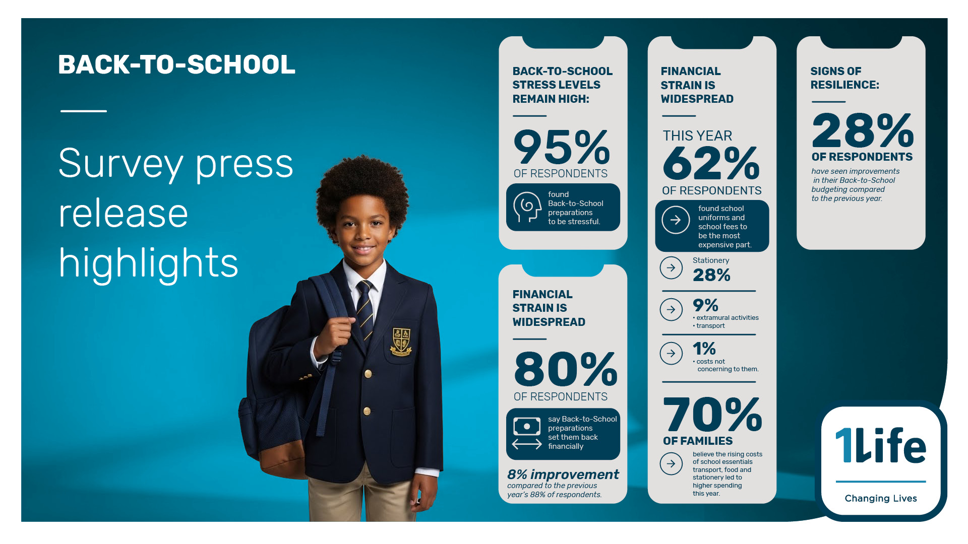 Although, the back-to-school season remains a financial and emotional hurdle for many families, this year’s survey data shows encouraging signs of resilience. Parents are finding creative ways to manage costs and prioritise education, even in the face of rising living expenses. This adaptability is a testament to their commitment to their children’s future,” notes Hayley Parry, Money Coach and Facilitator at 1Life’s Truth About Money.